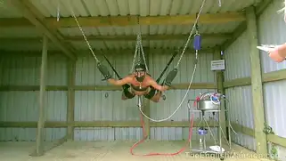- Разные устройства для БДСМ порно в комнате находятся, а телка ходит и записывает что-то, пока посредине комнаты висит парень. Он не может пошевелиться и на хую у него штука высасывает сперму. такая присоска на члене делает приятно, видимо, раз он не стонет от боли или чего-то неприятного. Девушка ходит вокруг дальше и наблюдает.