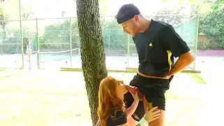 Трахнул рыжую сучку возле дерева и повел доебывать домой