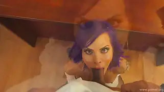 Порно видео HD, Минет и анал - Транс секретарша с синими волосами трахается в офисе с накачанным боссом. Для начала начальник получает глубокий минет от леди боя, а затем мускулистый ебарь приступает а анальному сексу, кончает на сучку