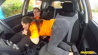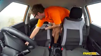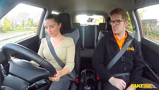 Девушка проходит порно стажировку с инструктором в машине