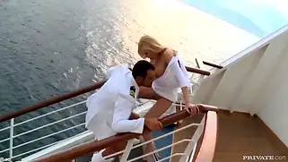 Бравый капитан ебет бабу интенданта на палубе и кончает на сиськи