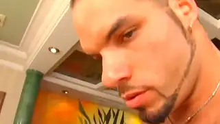 Taki Taki - Возбужденные транс телочки красуются перед зеркалом и собираются трахаться с небритым самцом. Одна из сучек, красивая блондинка с лежачим пенисом, дрочит чуваку балду и усаживается на хуй тугой задницей