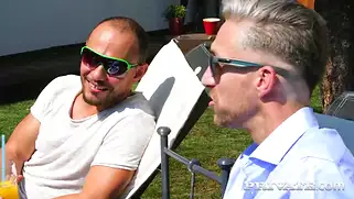 Порно видео HD, Блондинка - Знойных красоток по-отдельности ебут возле дома. Блондинка с короткой стрижкой и большими сиськами вылезает из небольшого бассейна на улице и трахатеся, шатенку в этов время ебут на лежаке до камшота и оргазма