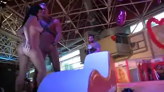 Порно видео HD, Ебет подругу - Стриптизер ебет подругу на сцене во время выступления. Распаленная танцовщица и сама не заметила, как начала сосать большой член мужчины по походу концерта на сцене, а потом была трахнута перед толпой