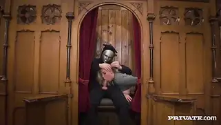 Порно видео HD, Вдул - Порно исповедь от сочной блондинки с большими сиськами и татуировками начиналась как обычно, но потом что-то пошло не так. Мужик в маске оказался в одной кабинке с белокурой шалавой и основательно вдул
