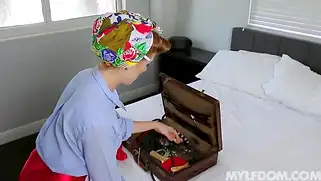 Порно видео HD, Рыжая в очках - Порно в наручниках для сисястой бабы устраивает лысый мужик в очках. Татуированный мощный ебарь сперва связал руки домохозяйки, а потом надел браслеты. Рыжая шалава с супер бюстом кончила на члене самца