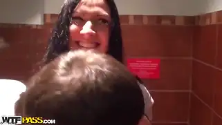 Питерская брюнетка сосет хуй в туалете и трахается на унитазе