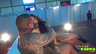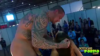 Порно видео HD, Баба ебет бабу - Татуированный качок ебет бабу публично. Худенькая девушка с рыжими волосами на сцене сосет хуй атлету с наколками, после чего насаживается пиздой на хер. Баба получает оргазм перед десятками поклонников