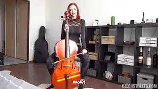 Czech Girls - Молодая порно виолончелистка ебется за деньги с парнем пикапером. Мужик снял на улице рыжую телочку с большими сиськами и пошел к девушке домой. Красотка делала минет и подставляла киску от первого лица