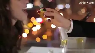 Романтичный ужин завершился еблей с камшотом на живот брюнетки