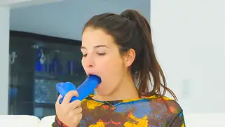 Облизала голубой самотык и дрочила писю