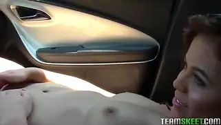 Порно видео HD, Сосет большой - Пикапер ебет на природе молодую соску с большими глазами и сладкой попкой. Сначала девушка сосет большой мужской пенис в машине, потом дело доходит до траха прямо на земле и мужик кончает в лицо шалавы