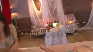 Порно видео с Kingstong, Jamaica Japanese Girls - Молодая девушка делает массаж мужику лысому в возрасте, который лежит под ней. Сначала просто руками растирает его и возбуждает в стояк, а потом садится верхом, но не для того, чтобы трахаться. Она волосатой пиздой азиатки гладит писюн и дико возбуждает старого извращенца, который положил руки на талию и трется об неё.