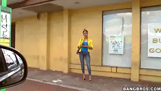 Пикапер мутит с незнакомкой на улице, чтобы позвать снимать любительскую порнушку