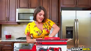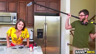 Порно видео HD, Большой хуй - Krissy Lynn ведет передачу, на которой ей придется обозревать и представлять публике порно перфоратор. Сначала достает большой пенис, после чего и само устройство. Надевает хуй на штуку и включает. Один из членов съемочной команды будет помогать ей и устроил еблю в прямом эфире. Рейтинги подскачут до небес.