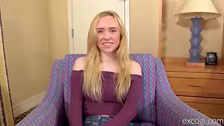 Порно видео HD, Секс - Секс кастинг со студенткой блондинкой устраивает ведущий в студии. Худенькая девушка с серыми глазами сосет болт и дрочит киску в качестве разминки. Чувак трахает стройную проказницу и кончает на девушку
