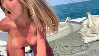 Порно видео HD, Я ебу - Красивый секс на прогулочной яхте устраивает яхтсмен для своей избранницы, блондинки с большими батонами и шикарной улыбкой. Мужик и красотка выходят в открытое море, где в голом виде шалаву ебут до оргазма