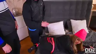 Порно видео HD, Кончил на очки - Зимняя групповуха с красивой телочкой случилась у парочки брутальных мужиков. Сучка в яркой красной шапочке бегала по улице и попала на куканы к чувакам, которые поимели шалаву дома и кончили на лицо бляди