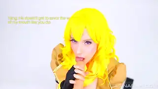 Порно видео HD, Секс - Имитация минета от бабы с желтой гривой сопровождается дрочкой киски. У девушки есть большой дилдо, на которой телочка насаживается, пока облизывает секс игрушку. Красотка кончает перед камерой для публики