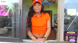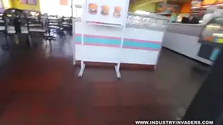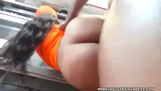 Порно видео с Kingstong, Jamaica Taki Taki - Кассирша соглашается пустить на кухню нигера с большим членом, который нагибает её раком, чтобы трахать между железных столов. Там шалава натягивают на хуй, пока нужно готовить бургеры. Второй типок, который с ним был, снимает со стороны то, как они чпокаются. Нигер ебет негритянку, она подставляет лицо, чтобы получить сперму себе на рожу.