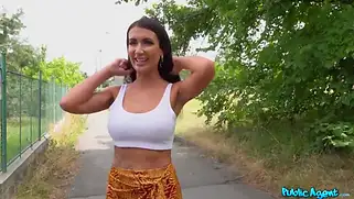 Порно видео HD, Минет на улице - Принцесса Жасмин трахается с пикапером на свежем воздухе. Чувак снял грудастую сучку на улице и соблазнил красотку большим хером. Брюнетка делала минет от первого лица и отдалась мужчине, который кончил на бабу