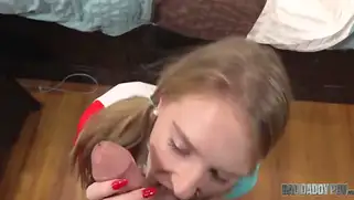 Голубоглазая русская краля продемонстрирует восхитительный минет глубокий