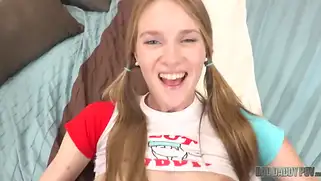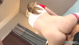 Порно видео HD, Молодая - Молодая светловолосая чирлидерша ебется с тренером на сборах, когда мужик с железным стояком случайно заходит в кубрик к сучке. Девушка в чулках делает минет от первого лица и отдается зрелому мужчине
