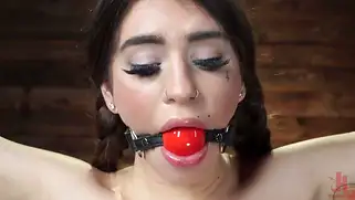 Грязная потаскушка с БДСМ наклонностями с кляпом во рту хочет трахаться ночью