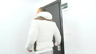 Жене невтерпеж и сучка прямо на лестнице отсасывает парню хуй перед трахом