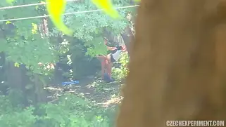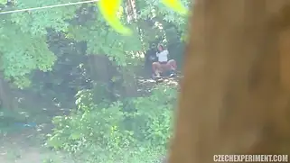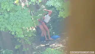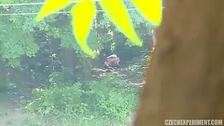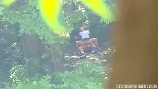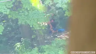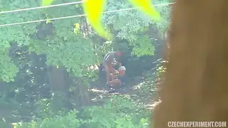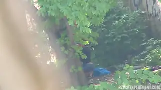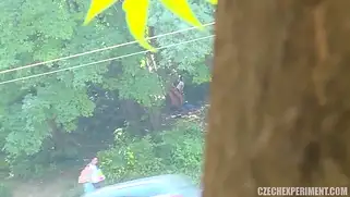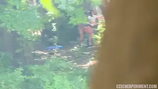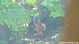 Подглядывание за парочкой, которая трахается в лесу возле дороги