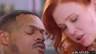 Ненасытная рыжая блядь кончает с негром