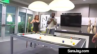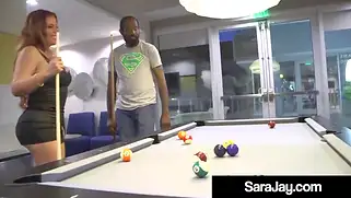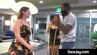 Порно видео с Kingstong, Jamaica Sara Jay - Nicky Ferrari и Sara Jay гоняют шары вместе с нигером, который проиграл им и призом для них будет большой нигерский член, который они хотят получить в ротик и пизду. Типок не против и порно с черным начинается с орального проникновения в ротик по очереди каждой шалаве. Все они стонут от ебли с африканским приятелем.