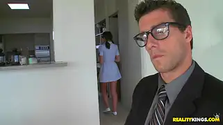 Порно видео HD, Секс - Горничной пришлось подставить пизду хозяину прямо во время уборки. Сексуальная служанка ползала раком по полу и была выебана большим ботом делового парня. Секс завершился окончанием на промежность чики