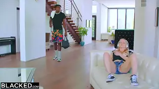 - Блондинка решила немного подрочить дырочку между ног и послушать музыку одновременно, от чего возбудилась и совсем забыла, что скоро придет приятель. Он увидел, как красотка у себя в штанах ковыряет письку и опустился помочь. С мокрой пиздой она соглашается раздвинуть ноги и начинается межрассовое порно, во время которого нигер жестко выебал бабу.
