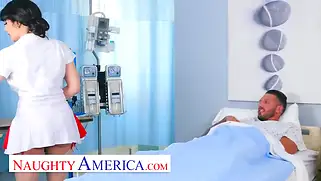 - Жопастая баба от скуки на работе решила хорошо провести время с одним из своих пациентов, который лежат в кровати, но тут же оживился, когда она перед ним начала снимать трусы и светить всеми прелестями. Естественно, она будет кайфовать тоже, когда прыгать на хую во время порнушки в больнице.