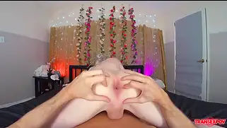 Порно видео HD, Секс - Секс с хуястым трансом от первого лица был устроен мужиком с камерой после минета. Блондинка с маленькими сиськами сосала чуваку хуй, дрочила конец сидя на животе верхом, а потом еблась в жопу со стояком