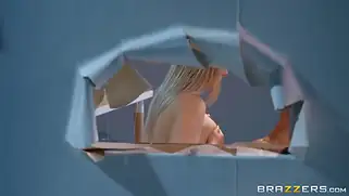 Danny D - Nikky Dream застряла в стене, когда случайно туда угодила во время танцев и стриптиза. А нечего фигнёй заниматься в рабочее время. Коллега, пришедший в кабинет заметил торчащую из стены жопу и стал её сначала разглядывать, а через минуту трахает ротик бабы через дырку. Она стонет и кайфует, но это помогает ей освободиться. Браззерс порно продолжается уже на свободе для телки.