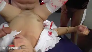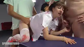 Порно видео HD, - Похотливые врачи оттрахали медичку с жирной жопой и в униформе. Парни в белых халатах прямо в процедурной стали ебать зрелую похотливую сучку, непрерывно кончали на шалаву во время шикарной больничной оргии