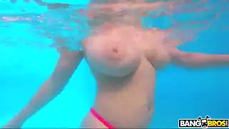 Секс под водой сложно снимать, но Натали с другом трахаются в бассейне легко