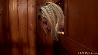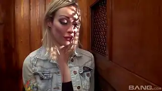 Очаровательная куколка в чулочках классно сосет хуй в туалете и стонет от траха