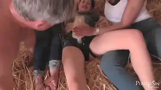 Порно видео HD, Ебут в анал - Красотки на сеновале трахнули мужиков в жопу при помощи страпона. Три озабоченные сучки ебут двух зрелых мужчин и наслаждаются анальной оргией, после секса чуваки решили полизать ноги ебливых нимфоманок