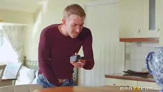 Danny D - Молодой парень пригласил грудастую мачеху в баню и трахнул красавицу с шикарными сиськами. Гламурная зрелая блондинка сделала минет самцу и была трахнута, сперма попала между губами в ротик опытной бабы