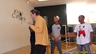 - Батя задолжал бабло банде гопников и они пришли к нему трясти бабки с него, но тут за старого должника впрягается его дочь. Она предлагает мужикам свое тело и тогда начинается оргия с неграми, которые без лишних разговоров насаживают красотку на длинные члены и будут трахать жестко в разных позах, пока не кончили все.