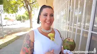Татуированная пышечка ебется во дворе по-всякому и сосет хуй