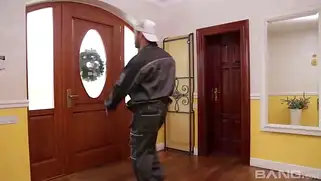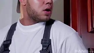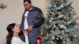 - Озабоченная телочка наплевала на мужа и соблазняет типов, которые ей заносили купленные вещи. Она довольная берет в ротик длинный член и будет трахаться со стонами и ахами, пока нигер и его белый приятель насаживают шалашовку на стволы. Они ебут бабу до тех пор, пока сами не получают оргазм и камшотят много спермы.
