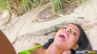 - Жопастая кубинка с классной сракой находит высокого парня на пляже и приглашает типа потрахаться. Типок уже возбудился и достал продолговатый хуй из штанов. Они направились в заросли, где собираются долбиться и снимать порево. Попастая краля занимается сексом с незнакомцем, присаживаясь на землю. Озабоченный не брезгует засовывать язык в анус бабе и ласкать анальную дырочку. Немного потрахались на песке, а затем длинный отнес сучку на теплый от солнца камень, где продолжает долбить дырку вагинальную толстенным и огромным болтом. Латинская няшка громко орет от кайфа ебли. Завершилось ебалово густой спермой.