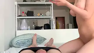 Порно видео с Kingstong, Jamaica Eva Elfie - Парень не проронил ни слова, наблюдая за своей девахой. Она красилась у стеллажей и приводила рожу в порядок. Сучка возбуждается от увиденного партнера и захотела трахаться. Молчаливый типок не обронил ни словечка, а она с улыбкой располагается возле ног и достает оттуда длинный пенис, получая кайф от процесса отсоса. Чувак заводится и твердый писюн к дальнейшему трахадрому. Вместительная киска будет протекать от улета, когда внутри двигается кукан. Заканчивается их любовная сцена густой спермой, плескающейся из верхушки хуйца. Конча опускается на язычок, а краля довольная облизывается.