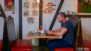 - Расстроенный парень разжалобил бабу в небольшой кафешке и та решает ему помочь с поиском партнерши. Вместо дурацкого приложения для знакомств она предлагает прокачать навыки общения и обольщения на своем примере. После короткой беседы парочка сливается в красивом и страстном трахе прямо на рабочем месте этой пошлой официантки и случается секс свидание. Из жалости к лысому чуваку, деваха полностью отдается в руки челика и насаживается на длинный пенис. Они жестко трахаются на полу, на столе, за кассой и самец активно вылизывает волосатую письку жопастой крали. Куколка даже в рот приняла сперму от партнера.