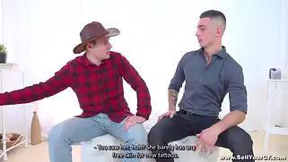 Порно видео HD, 2020 - Самочка с татушками задолжала много бабок чуваку, который и набил ей все татухи. Худощавый типок звонит её мужу и просит вернуть деньги, но у того нет с собой сейчас такой огромной сумму бабосиков. Он предлагает заняться групповым сексом втроем, с целью покрыть часть долга. Челик соглашается и муженёк продал жену самцу высокому. Тот не долго думая, натягивает на длинный болт вагинальную дырочку проказницы и трахается в пиздень с кольцами на половых губках. Завершать ебалово он будет кремпаем влагалища, кончая туда слизкой, густой и теплой спермы, наполняя отверстие собственными мужскими соками.