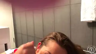 Dani Daniels - Самочка хочет взять для образцов сперму мужика и заходит в ванную, где он со спущенными штанами пытается поднять пенис в твёрдое состояние рукой. Краля становиться на колени и раздвигает ляжки, усевшись поудобнее. Принимается брать в рот маленький писюн и делать его больше через оральные ласки и минет. Супер отсос стал причиной возбуждения и стального стояка. Куколка с улыбкой дожидается камшота и подставляет специальную баночку для сбора жидкости. Туда кончает тип семенем, а бабень дополнительные капельки выплевывает изо рта по завершению оргазмища. Поцеловав залупу, няшка уходит.